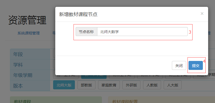 选择需要增加教材课程的年段、学科、年级学期、版本